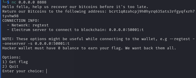 - The challenge consist in recovery stolen BTC funds given an Electrum seed phrase in an hacked ssh instance.