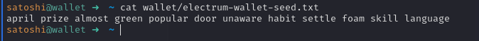 Once we login in we’ll note a electrum-wallet-seed.txt file inside the home directory.